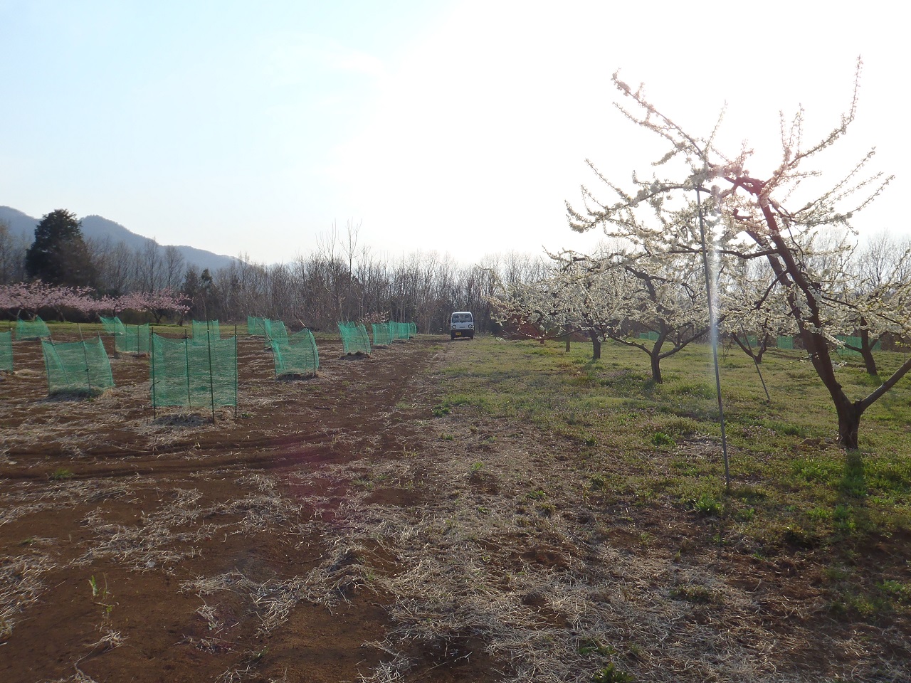 ひろいすもも畑に軽トラ