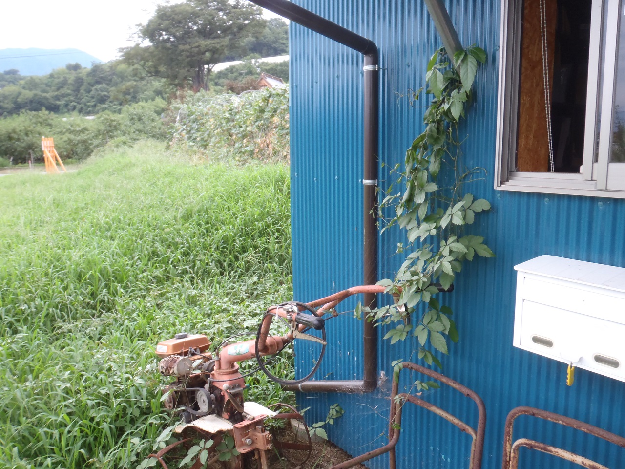 作業小屋の隙間からもツタが出始めて、壁を覆い始めています。