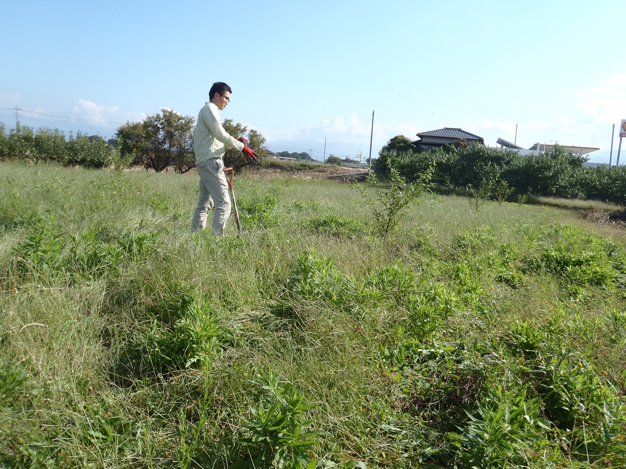 なので自然とスコップで雑草を切っています。