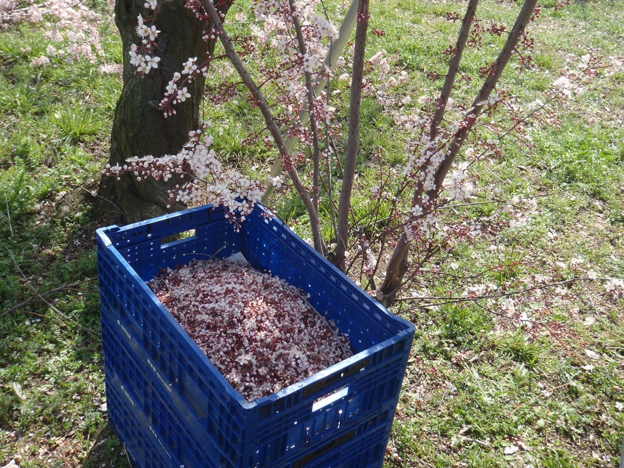 開花したてのすももの花なら、黄色いつぶつぶが残っています。
