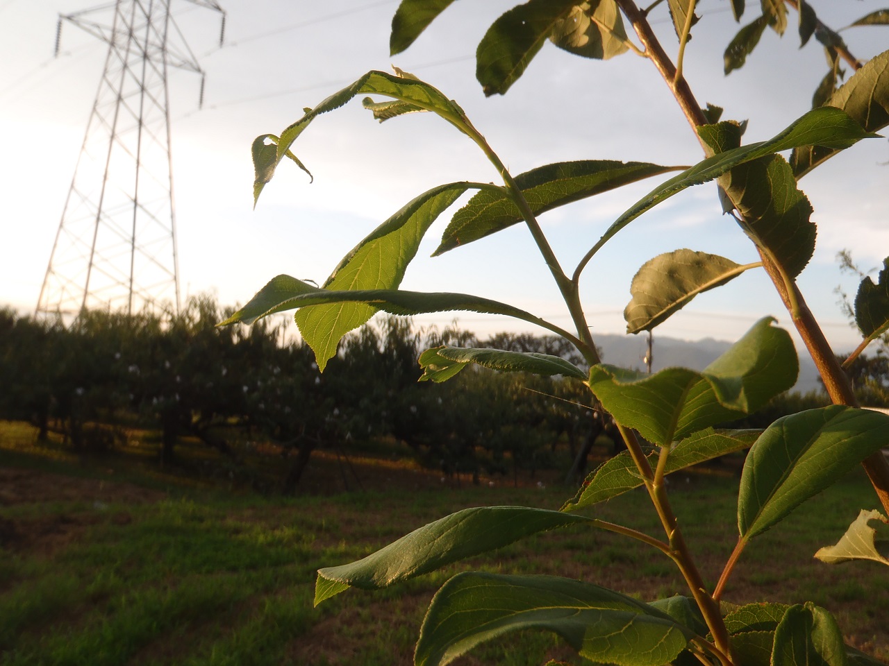 遠くからすももの苗木たちを眺めると、濃い緑の部分と黄緑色の部分があります。