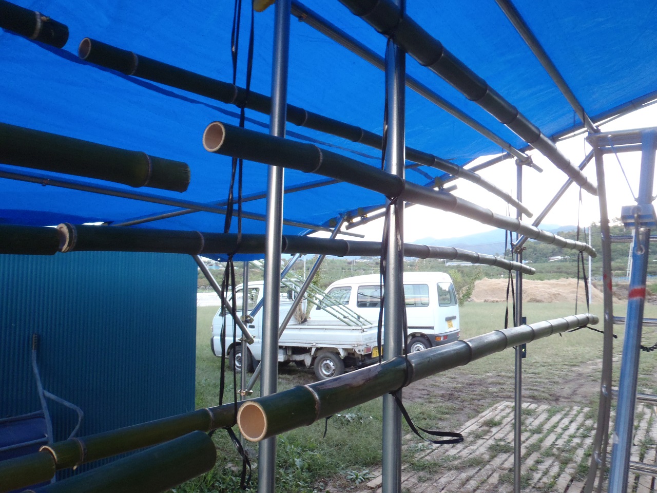 悩んだのは、竹竿を吊るす上下の間隔。