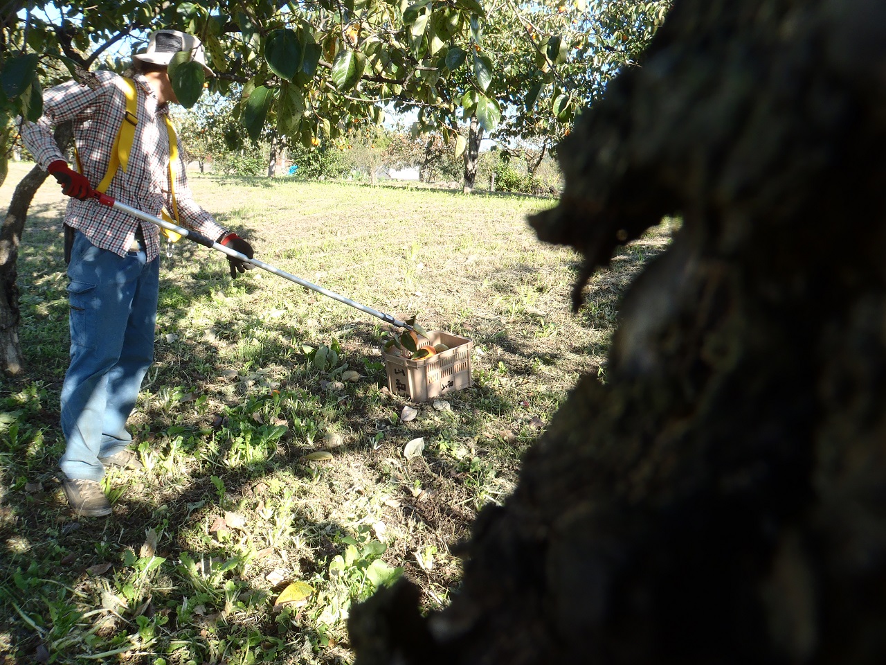成園の柿畑を借りたので、すでに柿の木は高く、脚立でも届かなかったり。